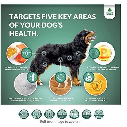 Targets Five Key Areas Of Your Dog's Health: Dogs of all breeds love these, and owners are seeing results! These healthy and delicious dog treats are packed with quality ingredients that promote skin and coat health, provide joint support, improve digestion, enhance the immune system, and promote cardiovascular health