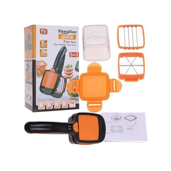 There are 7 small pieces in the shredder and four cutting tools with blades. Suitable for all kinds of vegetables, fruit cutting, dicing, cutting, slicing and other shapes.The vegetable cutter is made of high-quality plastic and stainless steel, which is used for a long time and is not easily damaged.Its perfect kitchen gift, suitable for family and friends, and cooking lovers