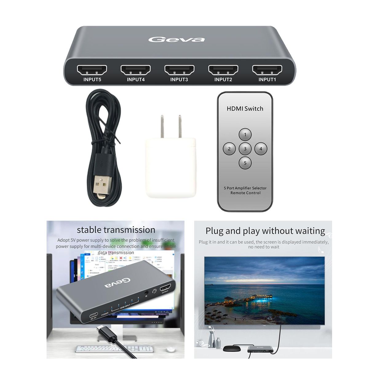 Smart Operation Switch:By pressing the key button to choose input device.and Can be controlled using the remote control.5 port Input 1 port output: 3 Port input connect with your HDMI devices like :,Computer ,Laptop , 1Port Output connect with your HDMI Screen ,Like :HDMI Monitor ,Projector.Sppport HDTV 4K (3840x2160P) resolution.HD Audio and HDCP Compliant:No distortion of audio or video, no delay in signal transference.Plug and play, extra power source is not needed.