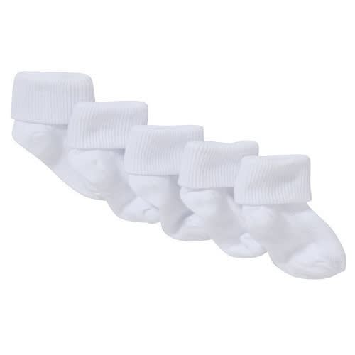 Pack of five white foldover baby socks in cotton rich material. This set is an essential that will complete your baby's wardrobe. These socks will keep your baby's feet warm and comfortable all day.