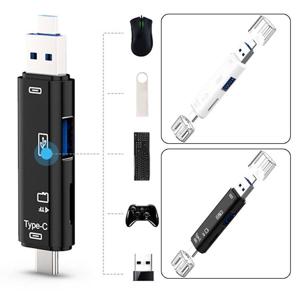 5 in 1 design, integrated USB, type-C, micro USB, TF and micro security digital card slot.