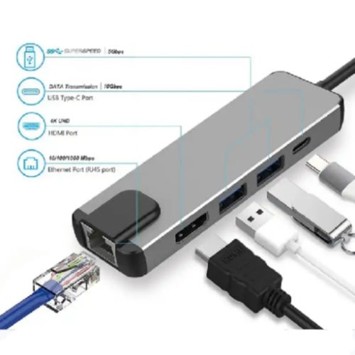 Buy 5 In 1 Usb Type C Hub Hdmi Ri45 Lan Adapter For Macbook Pro Thunderbolt in Nigeria