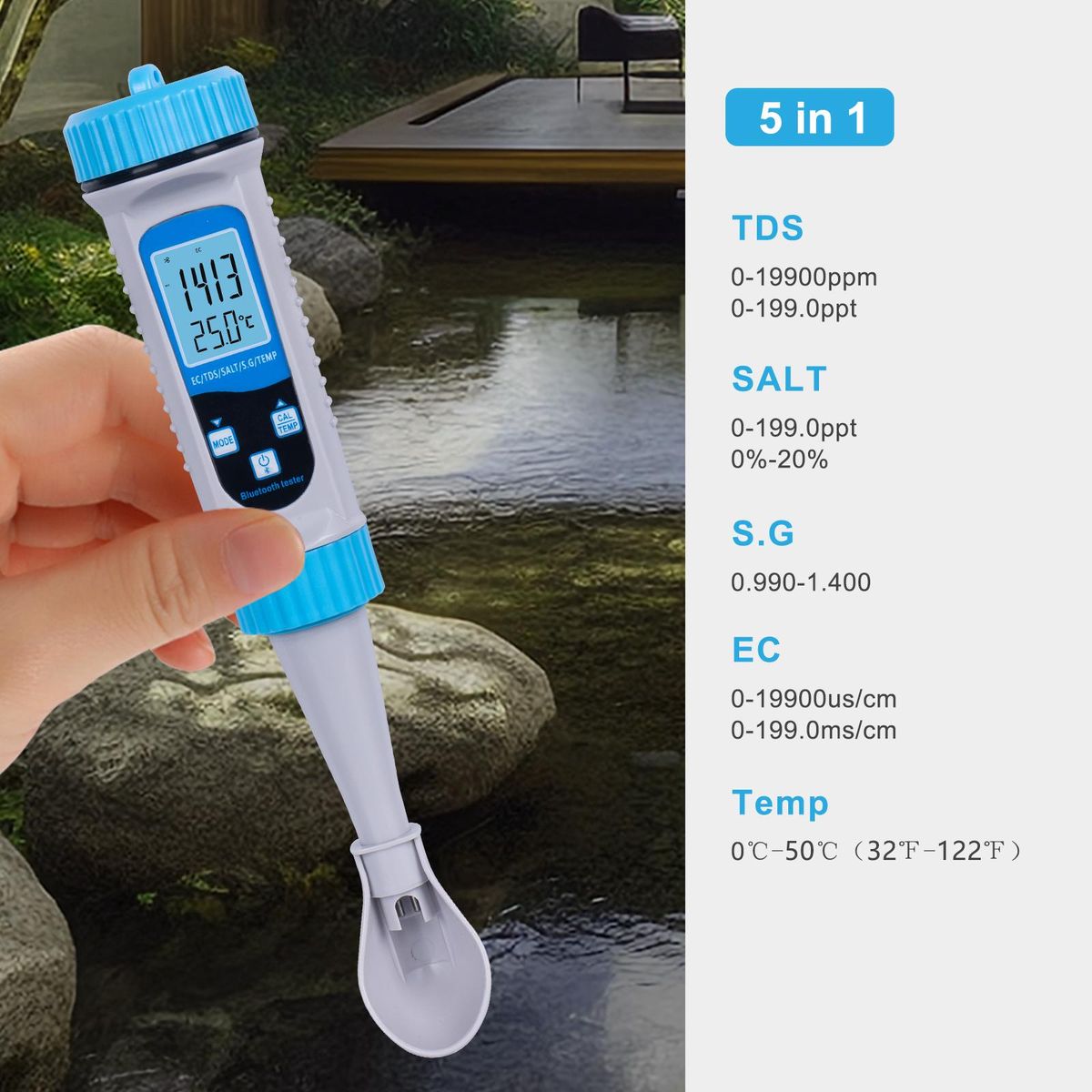 Buy 5 in 1 Water Quality Tester Pool Water Tester EC/TDS/SALT/S.G/Temp Tester Water Testing Detector with Backlight for Aquaculture Drinking Water Swimming Pool Aquarium in Nigeria