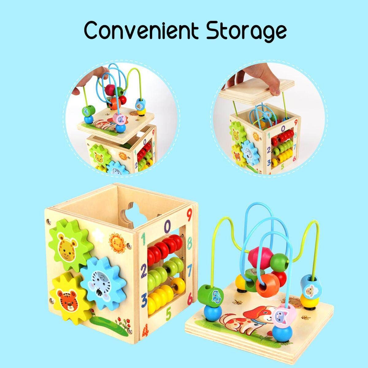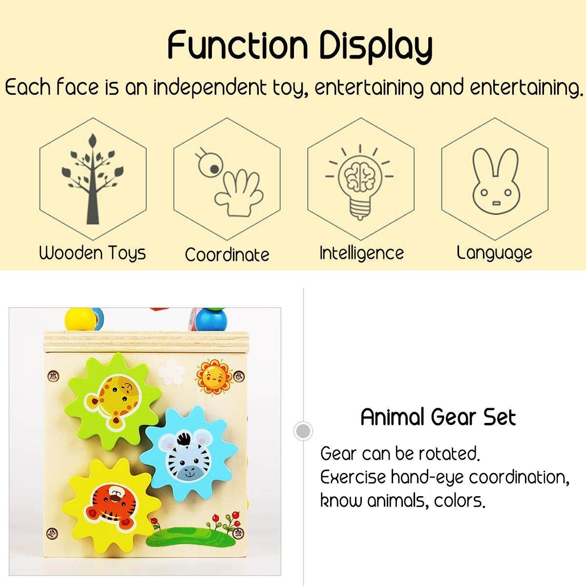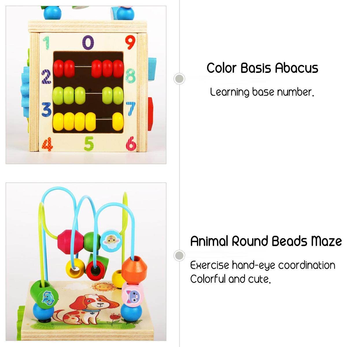 - 5 Sides of Activities: This baby activity keeps child entertained with Animal Gear Set, Cartoon Frog Clock, Shape Building Block Pairing, Animal Round Beads Maze, Basis Abacus.