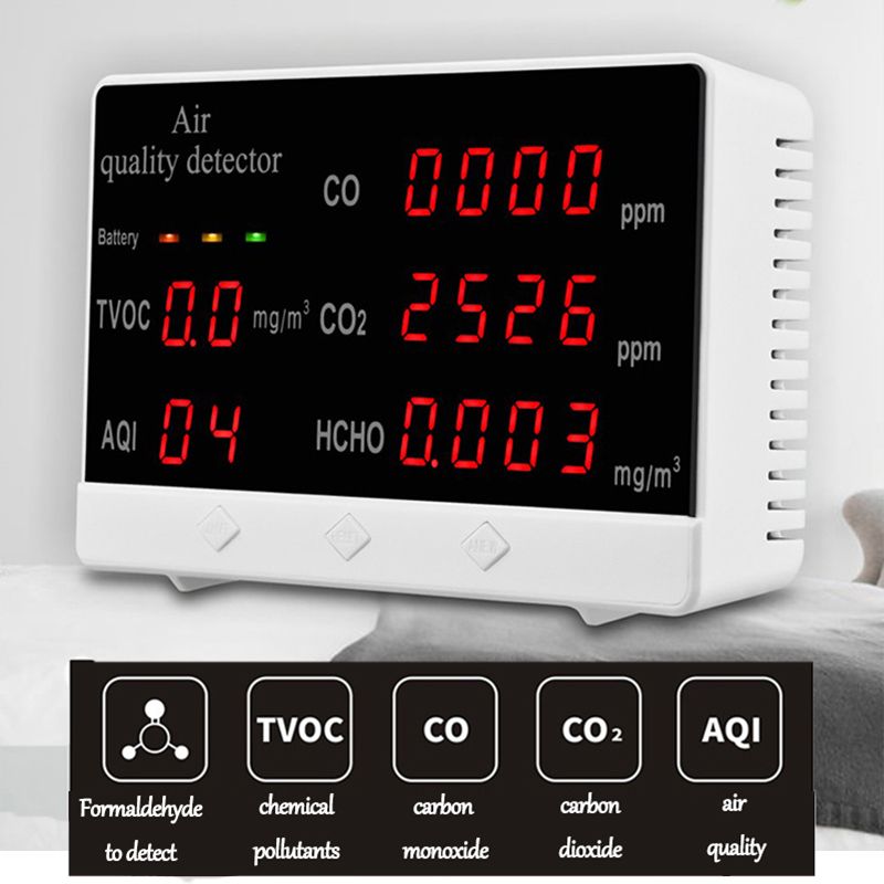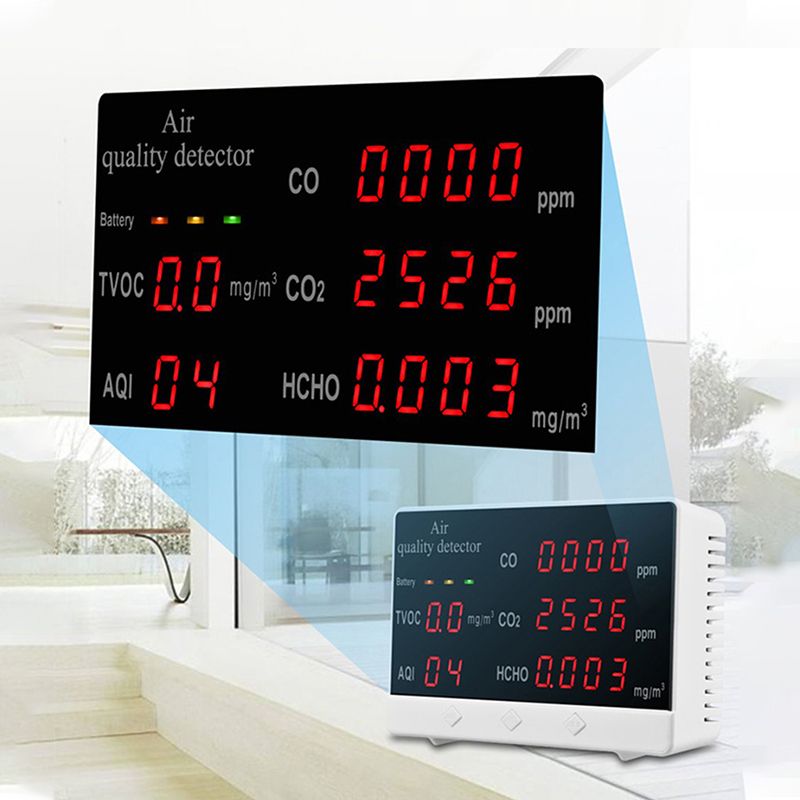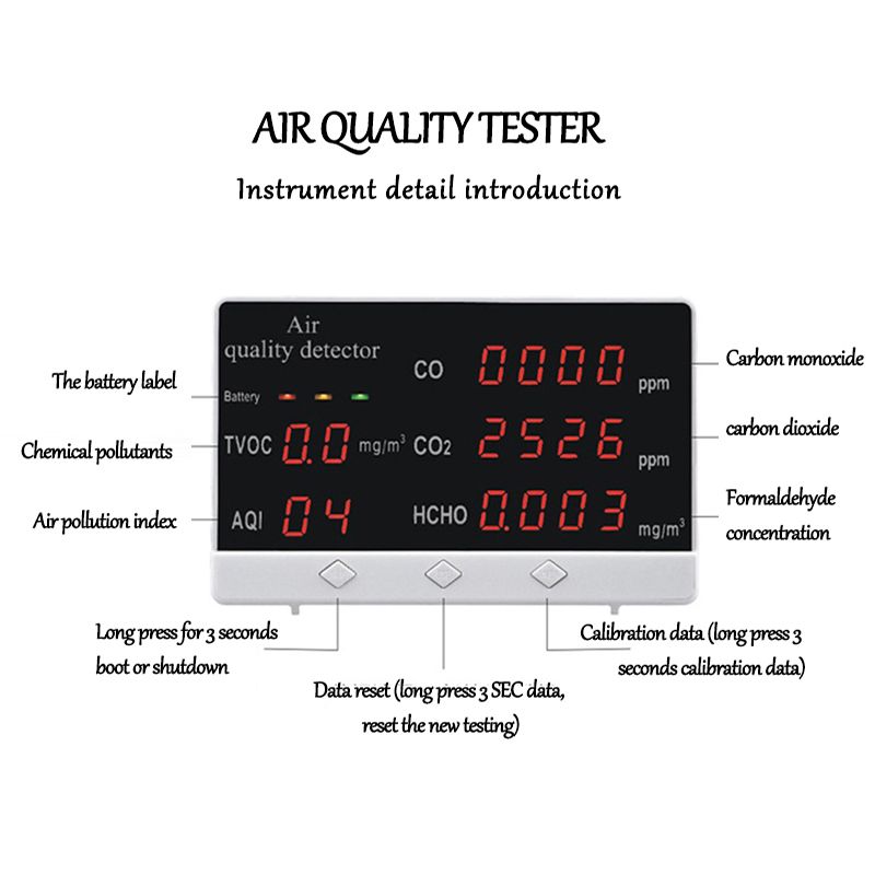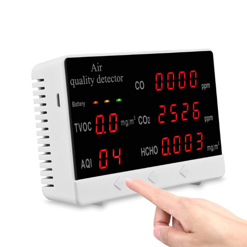 We all know that air is an indispensable part of our lives. The quality of air is affecting our body and mind, but the air is colorle and tastele,we can't measure it with the eyes. At this time, we need an air tester to help monitor the air quality. Features: Large screen display makes it easier to read data, and the ons are easy to operate. Easy to carry, suitable for home, automobile, office, factory and other envments. Detectable substance: CO, CO2, HCHO, TVOC, AQI. 24 hours real-time monitoring to protect the healthy life of you and your family. With battery power display, more convenient to use. Specifications: Material: ABS Color: Detectable substance: CO, CO2, HCHO, TVOC, AQI Application technology: natural air flow detection technology Display mode: LED digital display Error float: 3%-30% Power on preheating: 120 seconds Working voltage: 5V Battery: 1 * lithium battery, 1000mAh (included) Charging time: about 4 hours Standby time: about 180-240 minutes Item size: 125 * 80 * 35mm / 4.9 * 3.1 * 1.4in Item weight: 172g / 6.1ounce Package size: 168 * 108 * 40mm / 6.6 * 4.3 * 1.6in Package weight: 310g / 10.9ounce Packing List: 1 * Air Quality Detector 1 * USB Cable 1 * User Manual