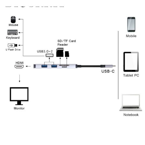 All-in-one USB C hub: CUDNY 6-in-1 USB Type C hub includes Type C PD charging port, 2 USB 3.0 ports, 4K HDM-I video output,Micro SD and TF card reader. SD card slot and TF card slot can be used on the hub at the same time, the appearance is extremelycompact and stylish.
