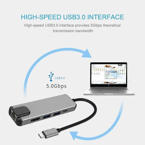 5 In 1 USB Type C Hub HDMI Rj45 Lan Adapter For Macbook Pro Thunderbolt 3, USB C To 100M Ethernet Adapter USB-C Charger Port BDZ