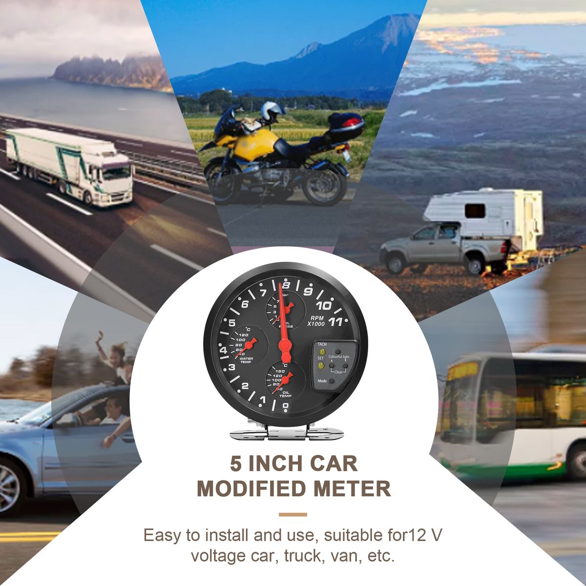 5 inch car modified meter, easy to install and use, suitable for 12 V voltage car, truck, van, etc.
