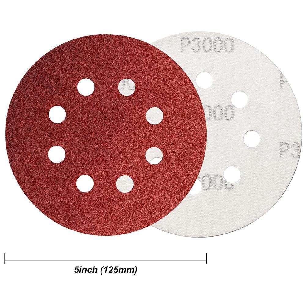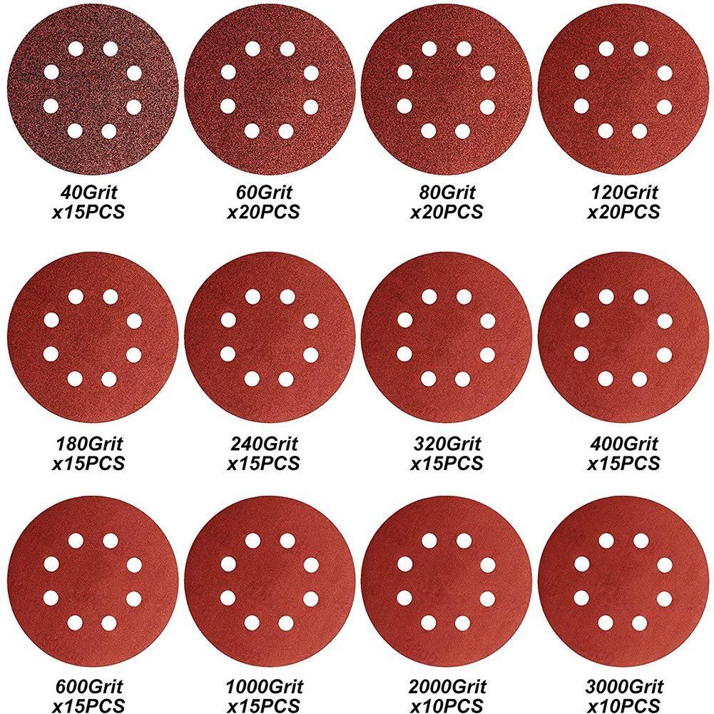 Excellent Design: The hook and loop Buckle backing design make it quicker and easier to remove and replace the sandpaper. And it keeps strong adhesion to avoid orbital sander sandpaper falling off. 8 holes are designed for efficient dust extraction. The grits of the sanding discs are printed on the backside for easy identification.