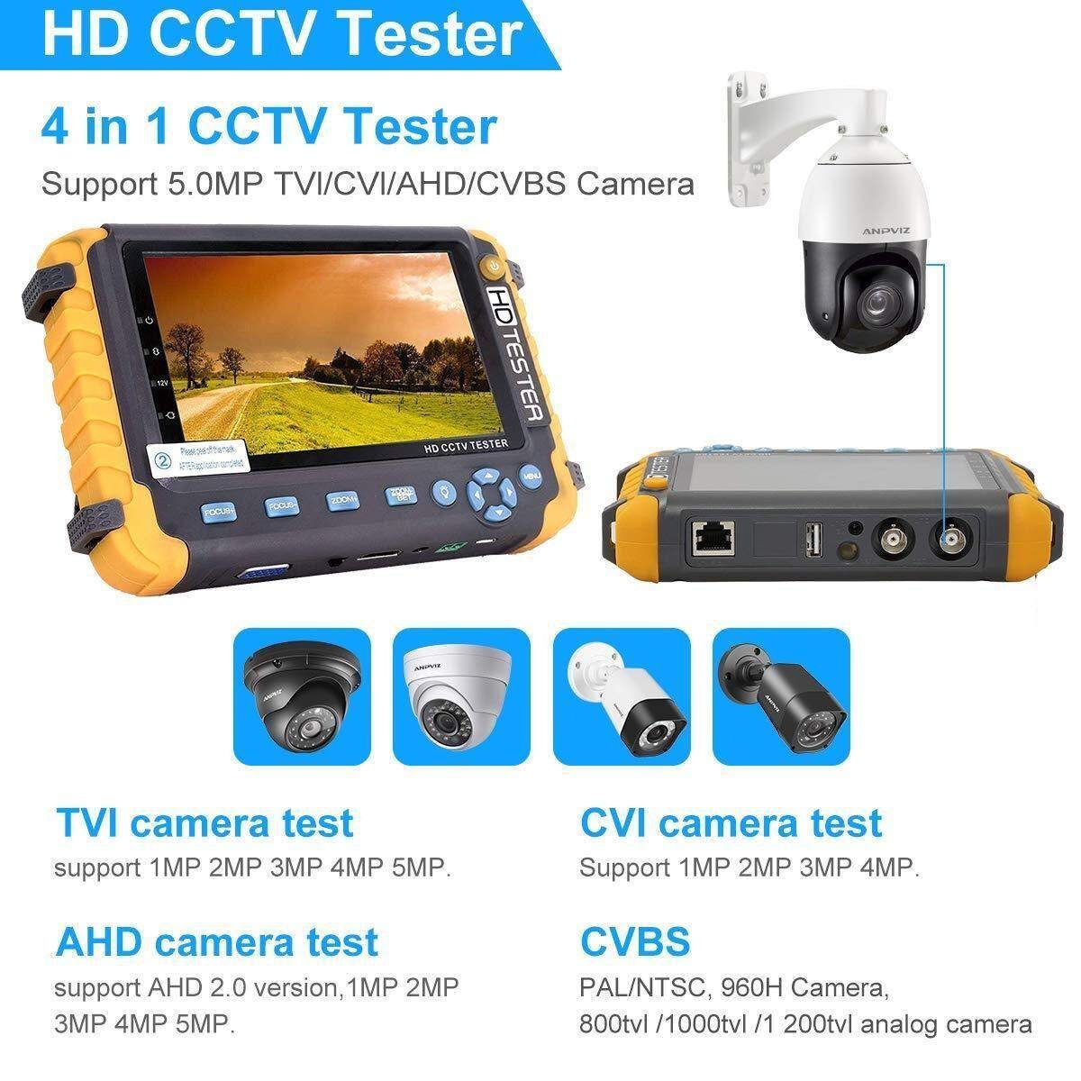 Specification :Video signal testing : tester, High-resolution 5.0 inches 800 (RGB) x 480 wide viewing angle display, Viewing angle larger, more intuitive and easy to display the camera image quality.PTZ controller :Video tester built-in Pelco-D / P PTZ control protocol, etc. , through its own RS485 interface, the user can control the PTZ up, down, left, right rotation, and adjust one machine zoom, focus, aperture size.Image :Multi-format video OUT port image , sending a variety of standard (e.g. PAL, NTSC) graphics sectionDC12V 1A output : the camera with DC12V (1A) output from the tester. It is helpful for demo and testing when the supply is not availableAudio testing : the audio input from pickup devices. Connect the tester and pickup device with the audio cable.Enhanced network cable testing :By UTP CABLE port on the meter, you can the connection of network cable.VGA/HDMI input : VGA/HDMI 1.0 video input, once connect VGA/HDMI video, please switch selector to select HDMI or VGA mode. The ma x imum resolution is 1920 x 1440(IV8W ) / 1920 x 1080 (IV8S)TVI camera :HD TVI video testing, 1MP 2MP 3MP 4MP 5MP (IV8W ) / 720p 25, 30, 50, 60fps/ 1080p 25, 30fps (IV8S). When TVI signal input, the tester will display HD TVI camera image.AHD camera :HD video testing, AHD 2.0 version, 1MP 2MP 3MP 4MP 5MP (IV8W ) / 720p 25, 30fps/ 1080p 25, 30fps (IV8S) . When AHD signal input, the tester will display the AHD camera image.CVI camera :HD CVI video testing, 1MP 2MP 3MP 4MP (IV8W ) / 720p 25, 30, 50, 60fps/ 1080p 25, 30fps (IV8S). When TVI signal input, the tester will display HD TVI camera image.LED lamp :It is useful for the engineer to install and maintain security system at night. LED On/Off pressing button, easy to operate.The graphic display :The tester has advanced control and protection circuit, low- energy-saving, 4 to 5 hours on a single charge, can be used normally for 12 hours.Package includeds :1 x Package1 x HD Coa x ial Tester1 x Adapter DC5V 1A(with USB cable)1 x International Standard 18650 2600ma Battery1 x BNC Cable1 x RS485 Connector1 x Output Conversion Cable1 x Audio Cable1 x Lanyard1 x Tool Bag1 x Instruction Manual