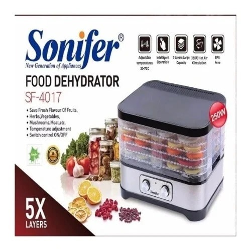 Sonifer 5-layer, commercial grade dehydrator is perfect for butchers, caf & eacute;s, restaurants, health food stores and enthusiastic home cooks to create healthy, raw and preservative-free snacks, treats, jerky, bread alternatives and so much more.