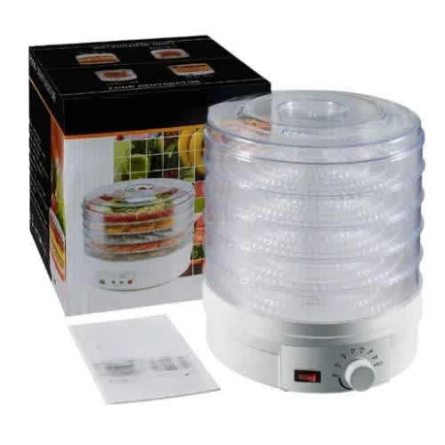 Multi-Tier Kitchen ApplianceDehydrates Food for Enhanced PreservationScientifically Tested to Increase Food Shelf LifeEasy, Single Button Operation and Nutritious ResultsFaster & More Efficient Alternative to Food DehydrationEffectively Dries Food by Removing Moisture ContentGreat for Food Storage: Drying Causes Food to ShrinkFood Reconstitution: Food Absorbs Water & Swells to initial SizeDehydration Retains up to 97% of Vitamins & MineralsHealthier Choice Alternative than Canning or FreezingYour Food Maintains Nutritional ValuePrepare Healthy Snacks for All AgesDries Your Food to Reduce SpoilageStain Resistant & Easy-to-CleanSimple One-Press Button OperationReaches Maximum Temperature of 180 & deg; F(5) Tier Trays for Enhanced Air-FlowHigh-Heat Circulation Travels Through Each TrayHeat Resistant and Dishwasher Safe TraysWorks with a Wide Variety of FoodsMeat, Fish, Poultry, Fruits, Vegetables and MoreUse for Meats to add in Stews, Soups, etc.Perfect for Making Oil-Free Veggie ChipsMake Home-Made Beef Jerky