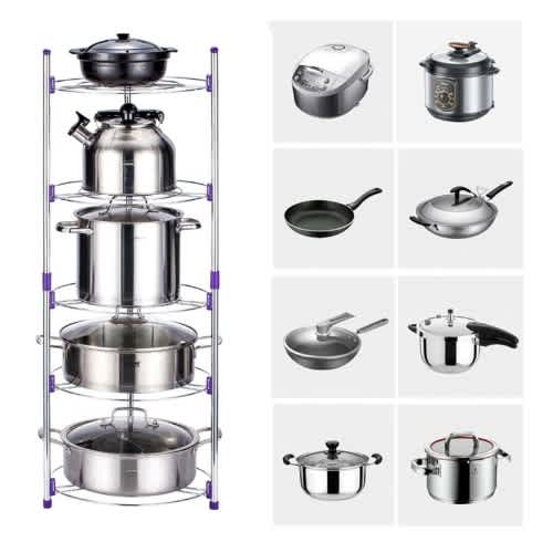 Large Storage Space : With 5 tiers design, an increase of five times the storage space, the pan stand can accommodate more items. Firm and stable, the pan holder rack is safe to use