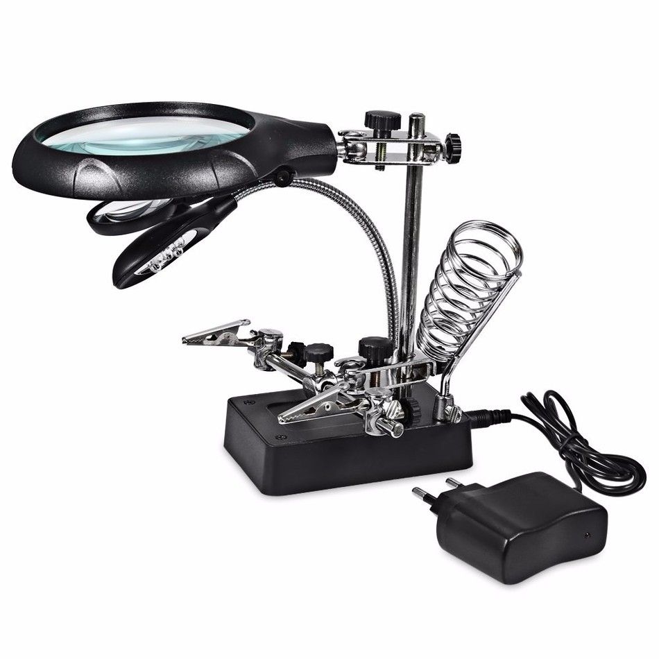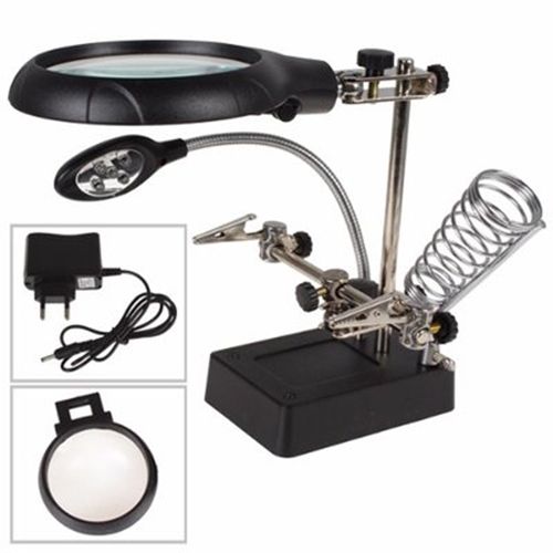 This product is installed with stretches small lens. With choices of different magnifications during operation, working on objects of various smaller sizes becomes easier. Three kinds of different stretchable gears are available to increase range of visual fields. The independent 5 LED lights make the magnifier and lighting device relatively independent. Distance and angle of lights can be adjusted freely. With the flexible design, this magnifier can also be used as a desk lamp, electronic welding, modelling, stamp collecting, embroidery, antiques, biological observation, etc.
