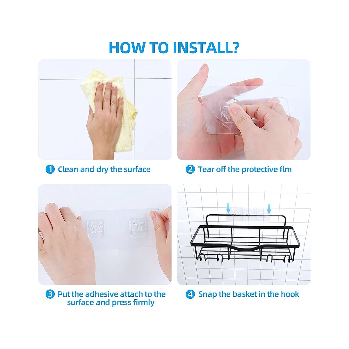 Strong Adhesive: Easily stick to the wall, no screws or any tools required, shower storage shelf secured by strong adhesive, trace less adhesive that won't damage the shower wall. Just apply the adhesive on your shower wall, then hang your shower organizer.