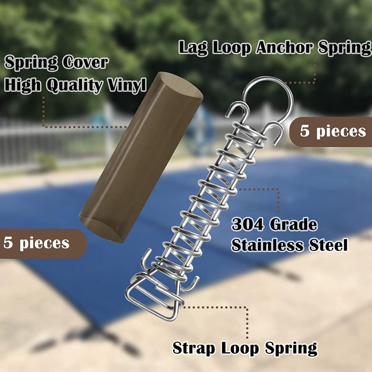 Stainless Steel Spring Kit This package includes 5 springs and 5 spring protective sleeves which is a fully equipped pool cover repment kit for your daily use and repment