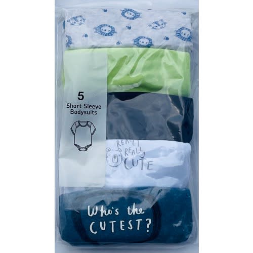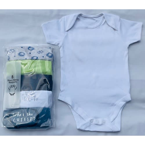 Bodysuits are made of 100% cotton for the softest touch on your baby's gentle skin. Bodysuits are essential to any baby's wardrobe, and these bodysuits are so comfortable that they can be used as underwear or even on their own. Assorted with printed designs, sayings, and prints; available in boy and girl designs and fits up to 12 months.