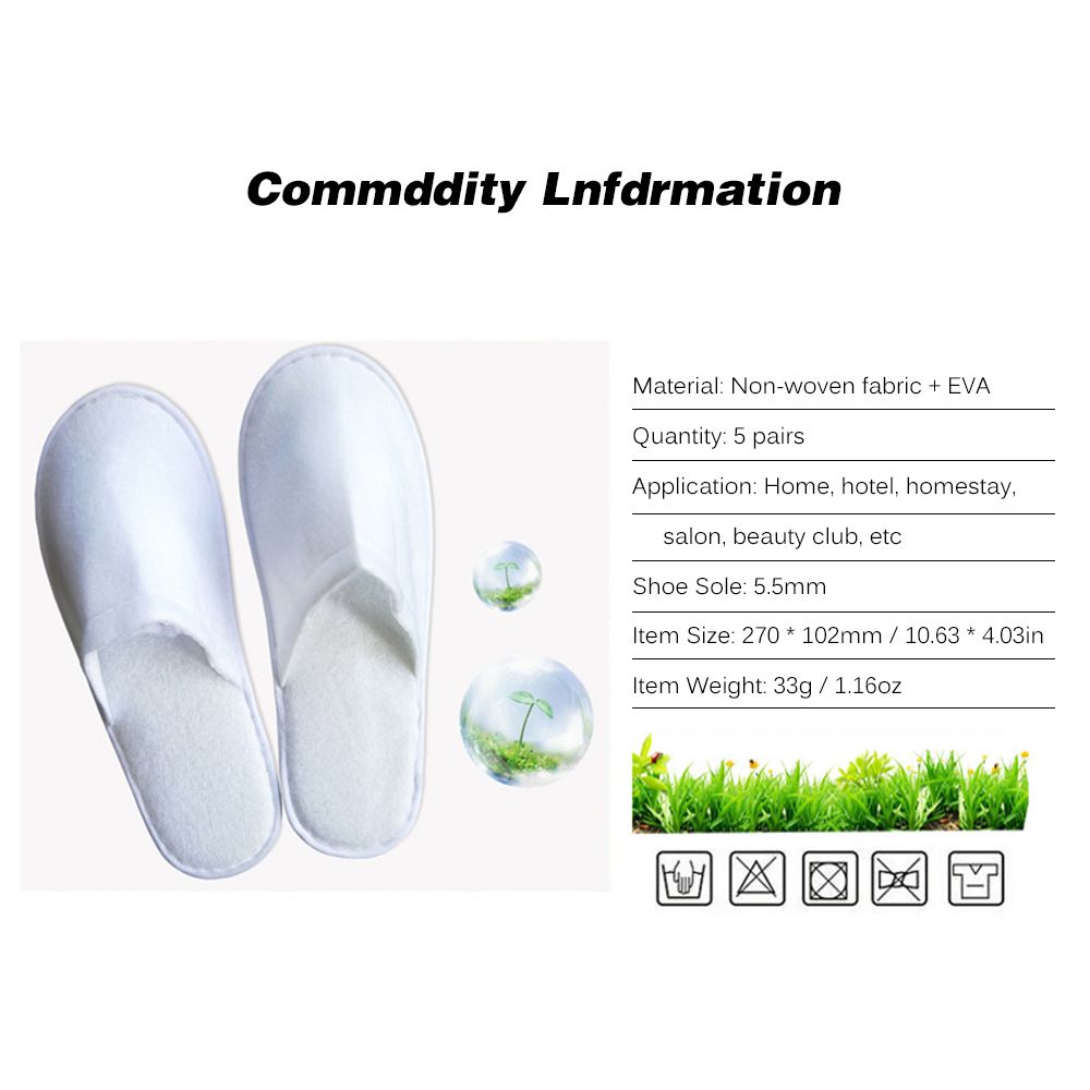 Set of 5pcs: package including 5 pairs of disposable slippers, pure white for any occasion.
