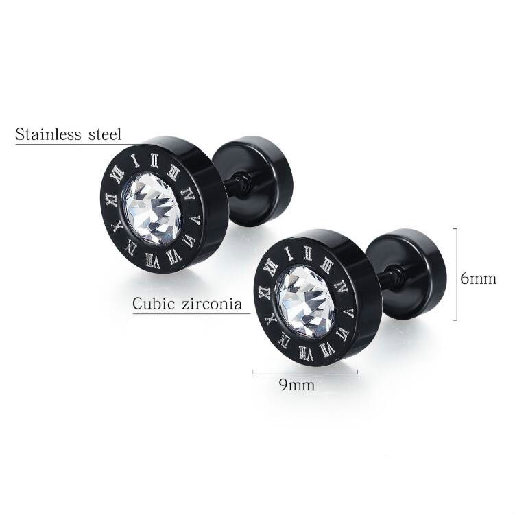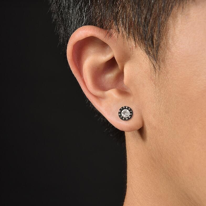 5 Pairs Men Numerals Round Diamond Earrings
