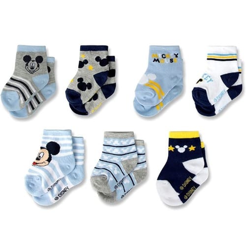 The box contains 7 pairs of cotton socks with different unique colors perfect for your babies starting to walk and test their legs. This makes an ideal gift for newborn baby boys.Exquisite blue baby boy gift set socks for fashionable babies with high taste and adorable designs.