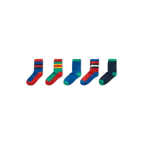 Boyish contrasting colors make these socks so versatile and a great value too. Pack includes 7 pair of different graphics and colour socks. Soft cotton blend terry keeps little feet warm. No skid soles. Machine washable.Note: graphics on the socks may vary.