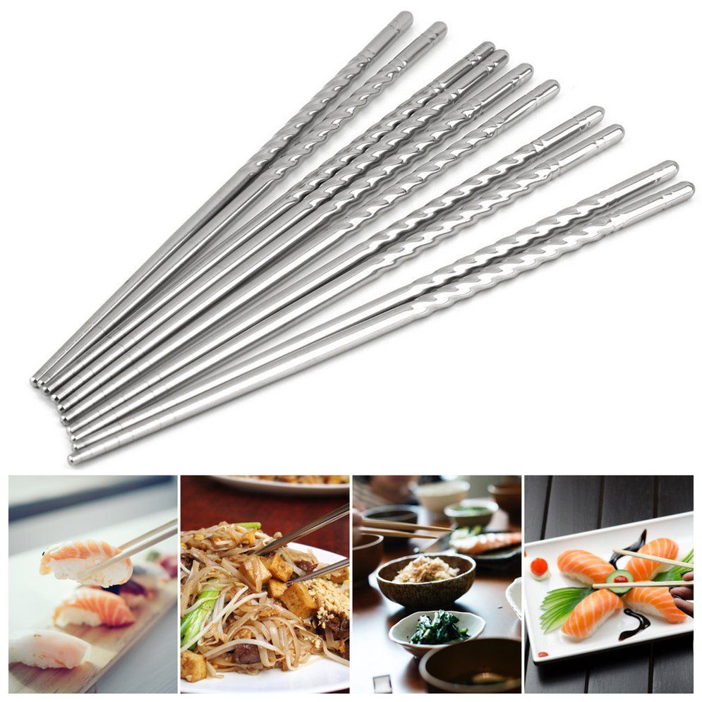 Buy 5 Pairs Of Stainless Steel Chopsticks Anti-skip Thread Style Durable Silver in Nigeria