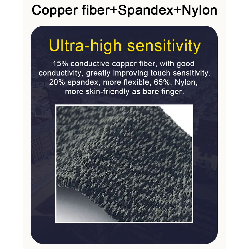 Made of conductive fiber and spandex material, it is very comfortable when playing games, and the thickness is only 0.3mm, so you don't need to worry about your hands or fingers being stuffy.