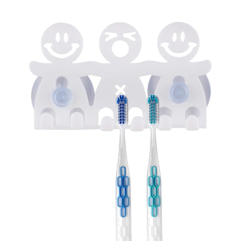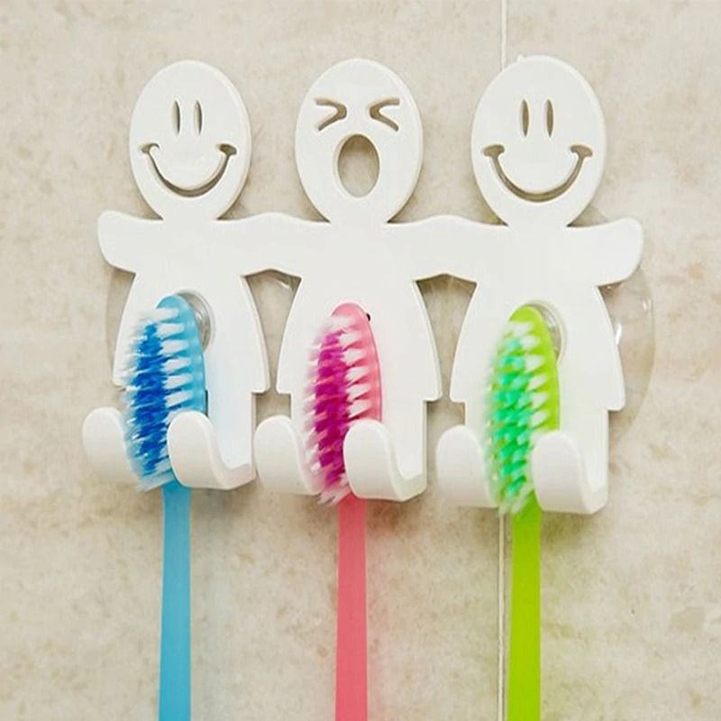5 PCS Cute Smiley Suction Cup Hanging Toothbrush Holder Plastic Small Person Teeth Holder