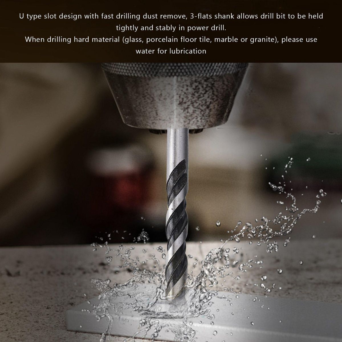 U type slot design with fast drilling dust remove, 3-flats allows drill bit to be tightly and stably in power drill.
