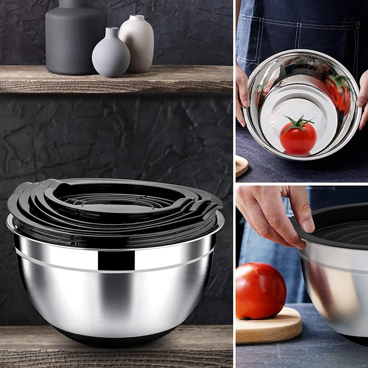 MULTIFUNCTIONAL: 5 different size Meet your requirements after whisking eggs, and tossing salads, mixing cake batter and kneading batter, also for preparing Food suitable, leftover, vegetable and holding fruits, It would make an perfect gift for home warming, wedding, Christmas and Thanksgiving