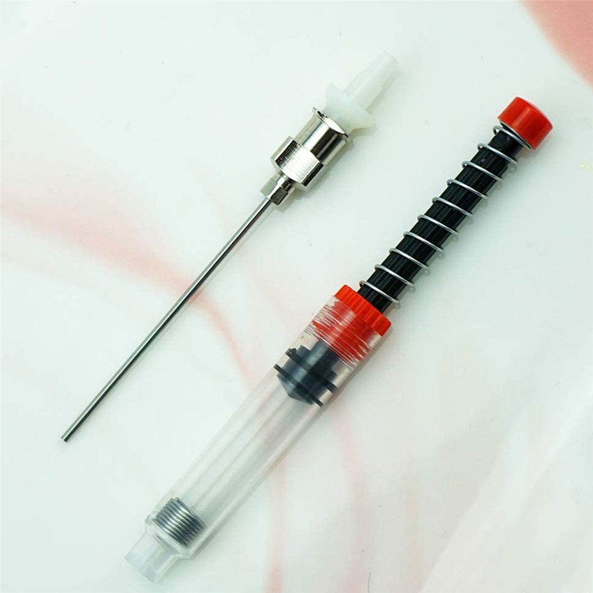 The spring changer is used with a pen. By removing the syringe needle, use a 3.4mm converter, such as the Hongdian pen.