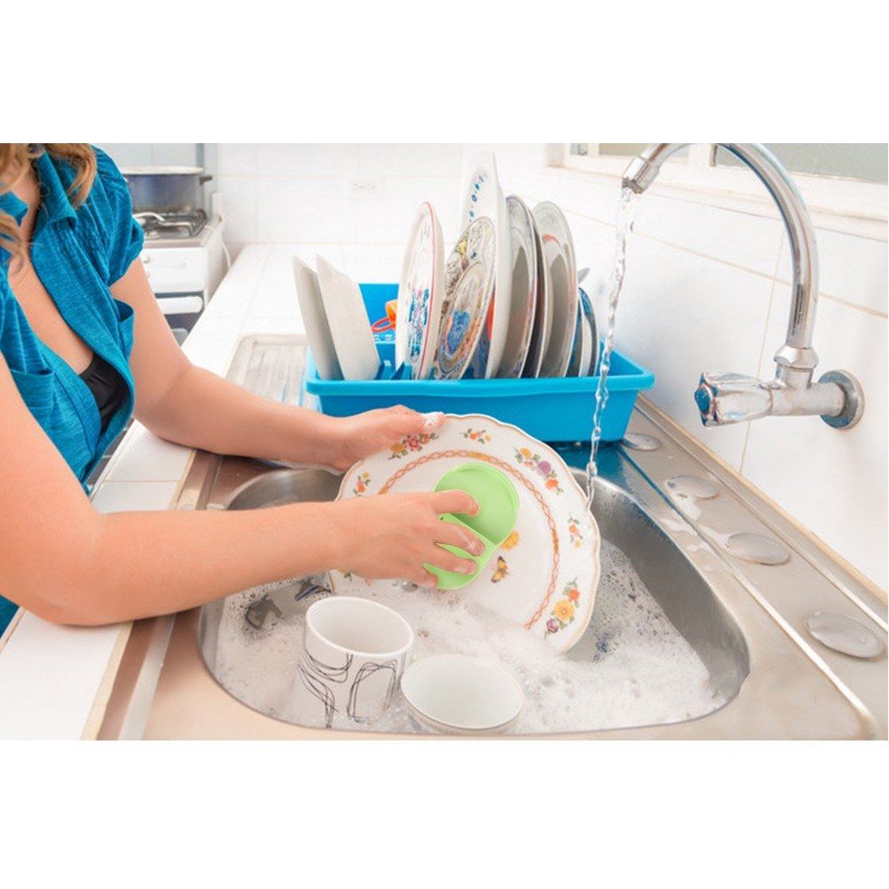Silicone dish brush with soft bristles works great to clean your tableware or cooking utensils, it\\\'s soft, heat-resistant and durable to use.