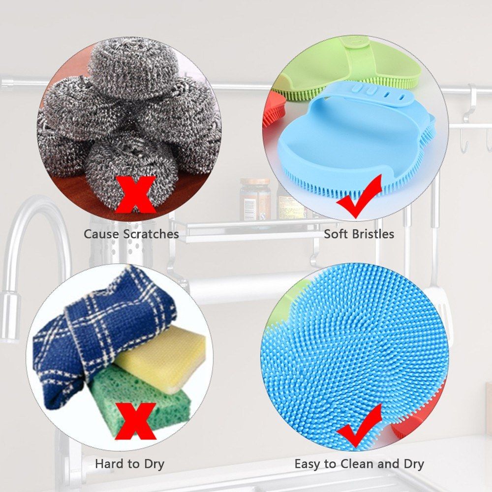 Soft silicone bristles, more friendly to your bowls, dishes, pots, pans and more.