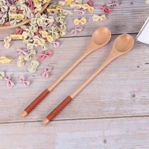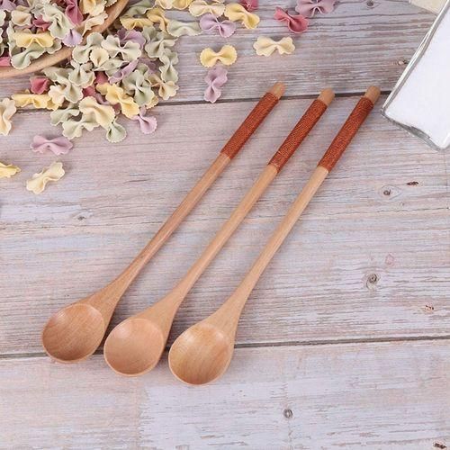 Great for dessert, salad, fried rice, curries soup, rice, cereal soup, Korean or Japanese meals and so on. Wooden Spoons with Tied Thread Honey Stirring Spoon Round Long Handle Spoons Tableware