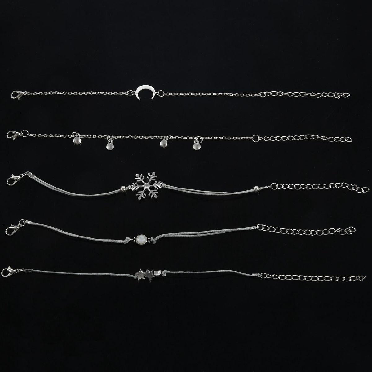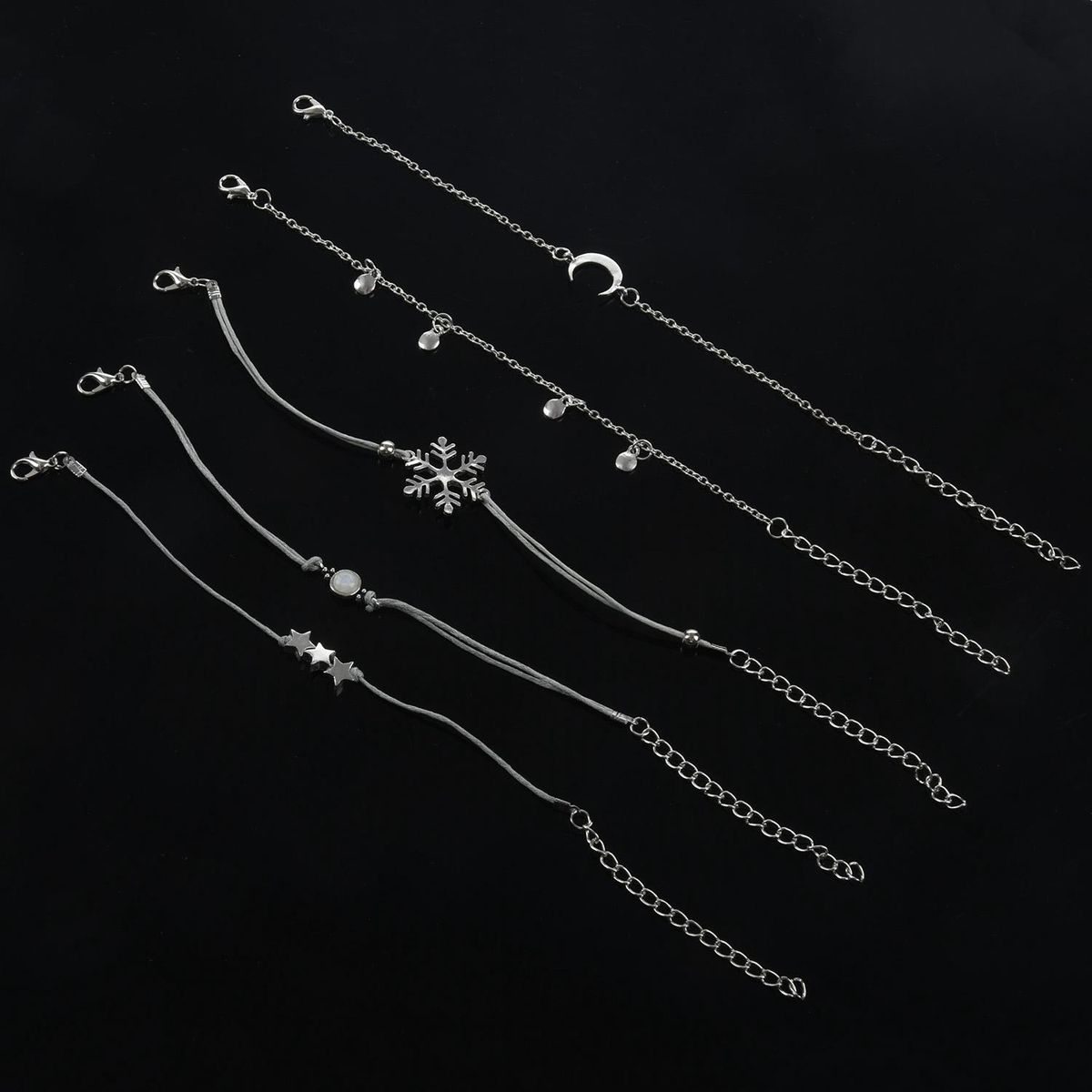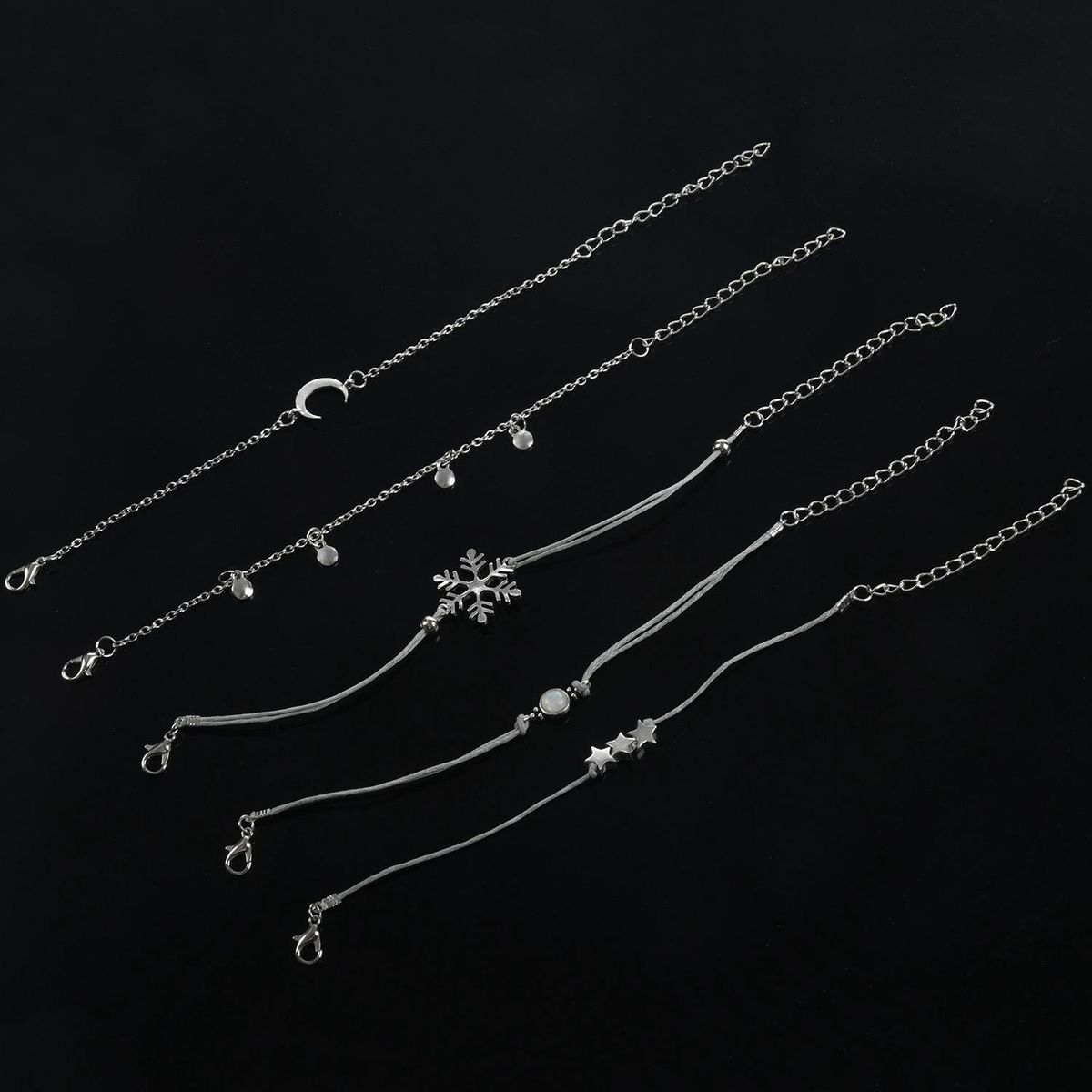 Idea :Snowflake Moon Star Gem Pendant Bracelet Set