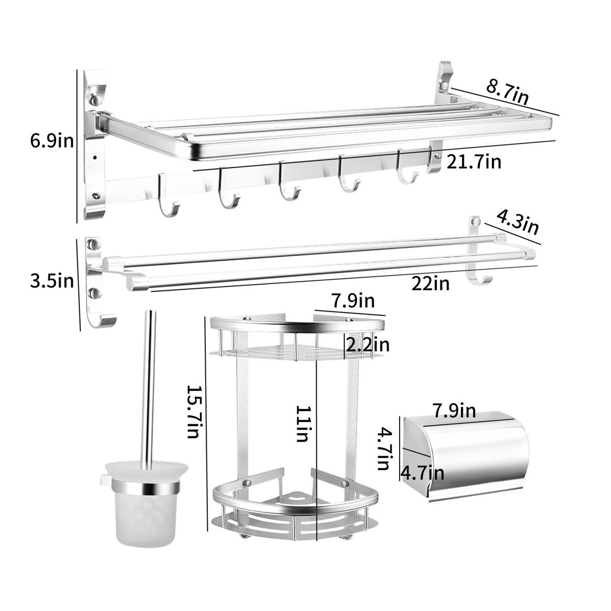Buy 5-Piece Set Wall-Mounted Aluminum Bathroom Accessories Towel Racks with Hook/Shower Caddy/Paper Holder/Toilet Bowl Brush and Holder in Nigeria