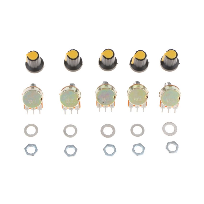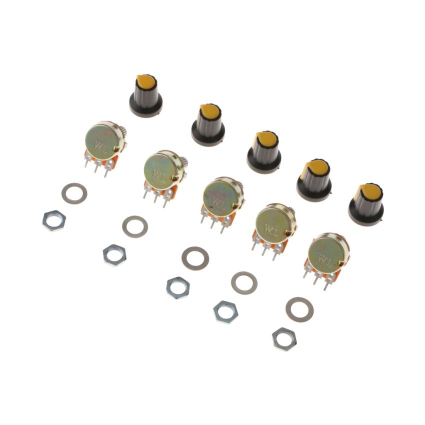 5 Pieces Single Linear Potentiometer5 Pieces Screws5 Pieces Washers5 Pieces Yellow Caps