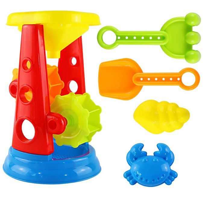 Including 1 water wheel, 1 rake, 1 shovel and 2 animal molds