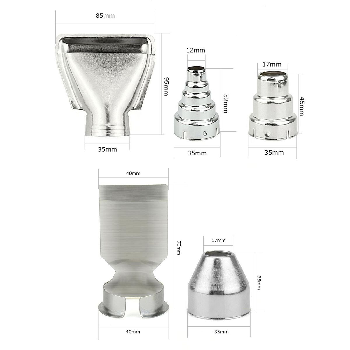 Stainless Steel Material: These heat gun nozzles are made of stainless steel material, durable and sturdy.Easy to Replace: Versatility for replacing old or damaged parts, easy to install.Widely Used: Our heat gun nozzles is great for welding, bending and heat shrinking of plastic pipes.Application: Suitable for all kinds of heat gun.Size: 5 different sizes of heat gun nozzles for different purposes.