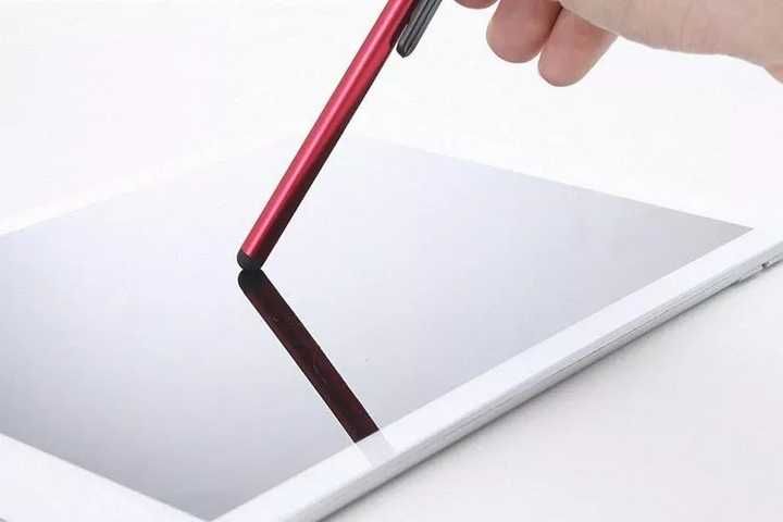 Touchscreen pen is more sensitive than a finger allowing for more precise clicking and writing within its 360° spherical and soft tip.