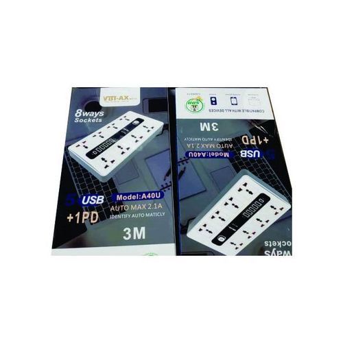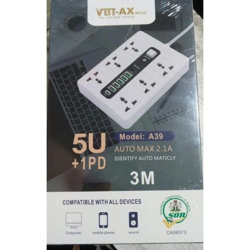 VBT-AX MEGA INTELLIGENT SOCKET is a high quality surge protected power strip with 3X anti-static universal AC sockets and 2 meter long power cord. Its 6-port USB power supply ports can charge any digital products [phone / Mp3 / Mp4 / Mp5 / USB fan / USB air purifiers and other] at full speed Provides complete protection from power surges, spikes, and AC contamination.