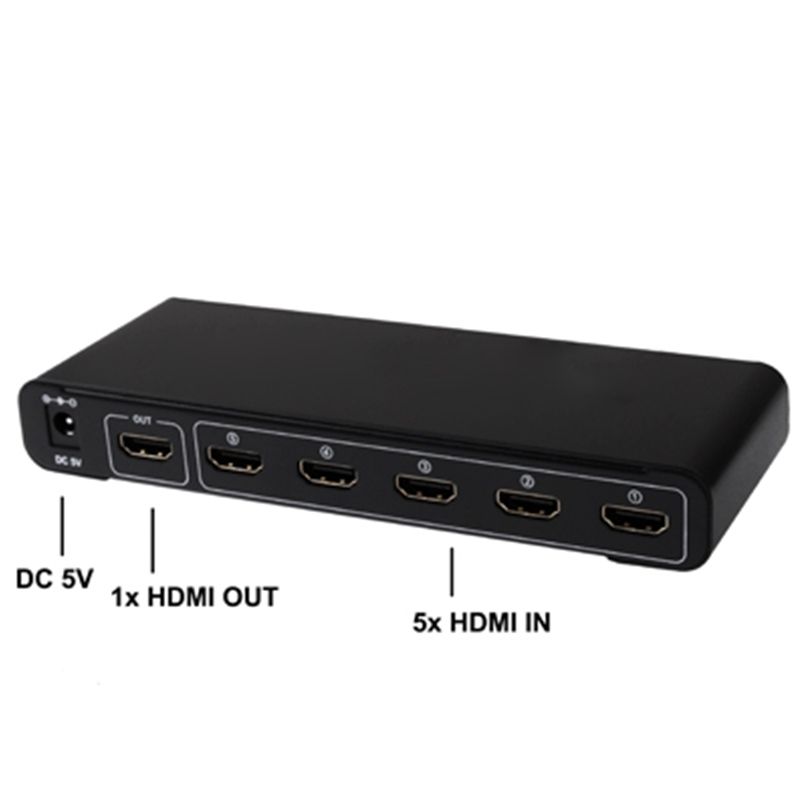 5 Ports Full HD 1080P HDMI Switch with Switch & Remote Controller, 1.3 Version (5 Ports HDMI Input, 1 Port HDMI Output)(Black)