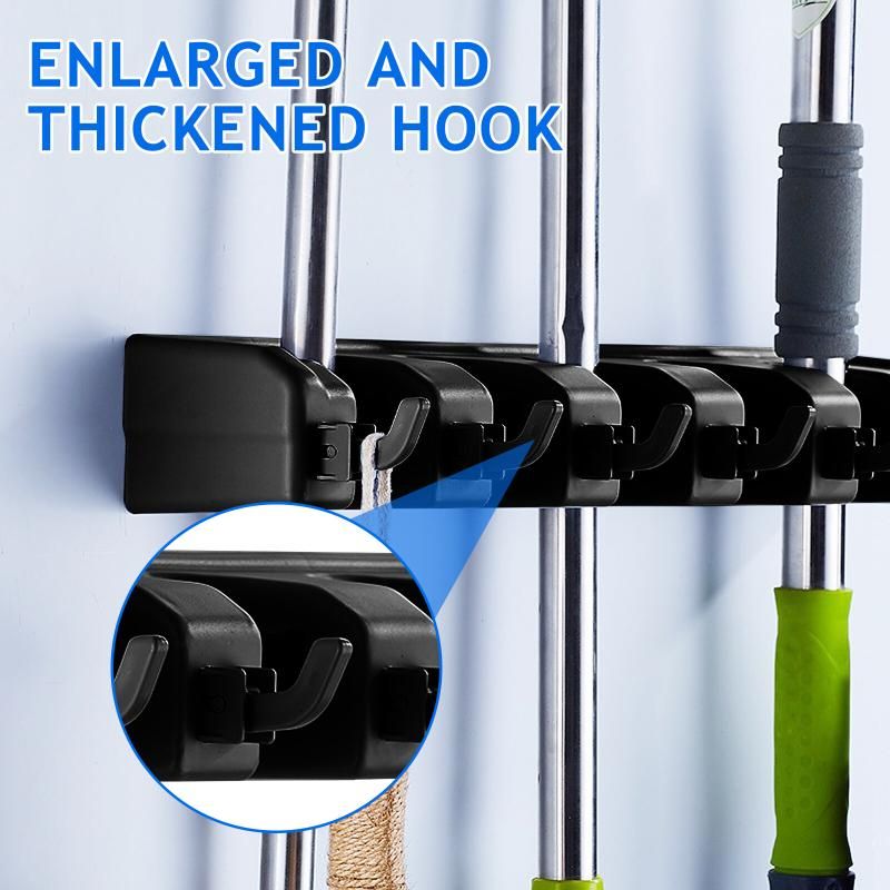 - The mop rack has 5 positions and 6 hooks to help you to hang mop and towel. Make your Pantry clean and organized.