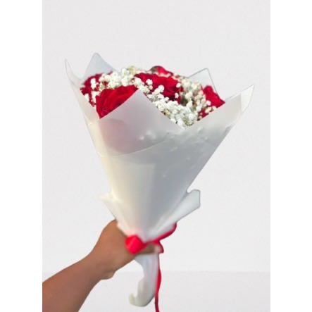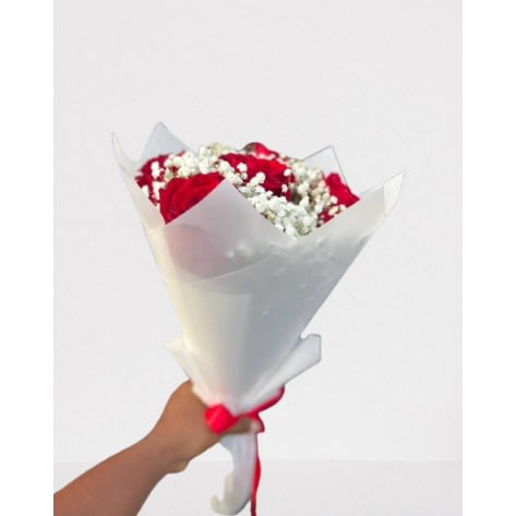This rose bouquet consists of 5 Red Roses & Gypso Mix that exude a delicate fragrance.