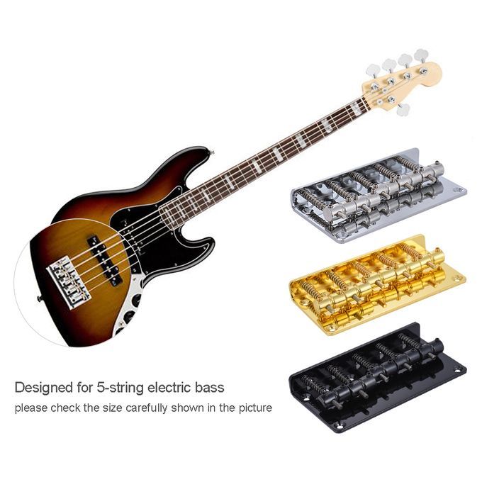 The bridge is designed for 5 string bass, made of zinc alloy and iron, and the height of the string is adjustable,18mm string spacing, great part for 5-string bass replacement, please notice the detailed dimension shown in the picture.