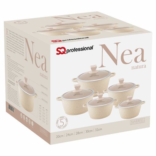 Elegance inspired by tradition, combined with modern technology, defines the Nea range. The durable and resilient casserole is manufactured from heavy weight diecast aluminium which distributes heat evenly. Ceramic coating on the inside allows for healthier cooking with less fat. Casserole comes with tempered glass lid for easy viewing and is suitable for cooking on most types of hobs, including induction cookers. USE & CARE Always cook on low to medium heat, especially if using an induction cooker. Do not leave an empty casserole on the high heat for a long time. Always use plastic, silicone or wooden utensils to prolong the life of the ceramic coating. CLEANING Wash with warm soapy water and dry thoroughly with soft cloth. Never use metal or coarse scourers or brushes. To remove heavily burnt on food fill the casserole with warm soapy water and leave overnight, then wash as usual. Stockpot sizes: 20cm/H 9 cm/2.5L, 24cm/H 11.3cm/4.2L, 28cm/H 12.5L/6.1L, 30cm/H 13.5cm/8L and 32 cm/H 14.5cm/10L