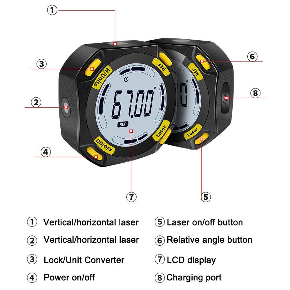 Buy 5-Sided Strong Magnetic Inclinator Digital Level and Angle Finder Versatile 4 * 90° Inclinometer LCD Display Dipmeter Gauge 4 Unit Switchable with Two Laser Lines in Nigeria