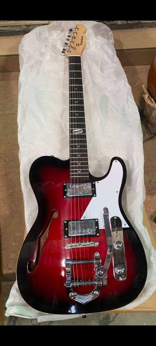 This is a brand new high quality professional strong wooden acoustic guitar. It comes with the bag and belt. It is the first choice for Guitarists and Guitar lovers. This beautifully designed and attractive guitar is all you need to start marking those harmonious and melodic sounds. Feel the sound. Get yours today and feel the sound.
