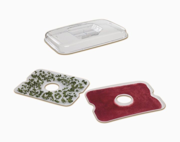 1 x Hamilton Beach Digital Food Dehydrator 5 x Stackable Drying Trays1 x Fine-mesh Sheet For Small Foods Like Herbs1 x Solid Fruit Roll Sheet