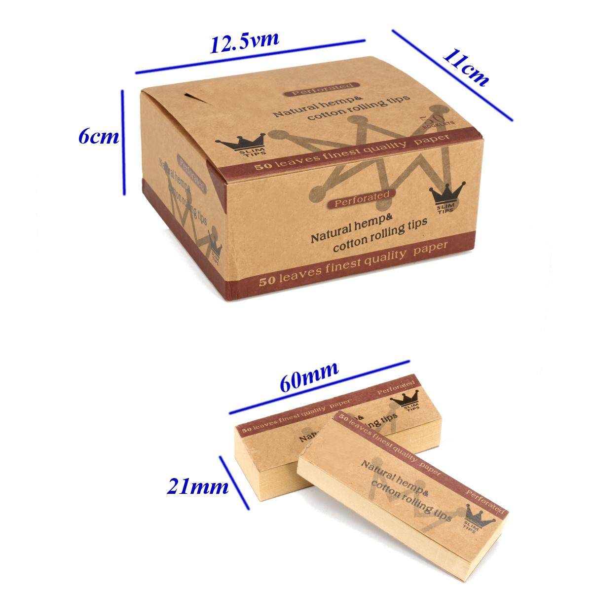 50Booklet Brown Perforated Rolling Filter Tips Paper size 60*21MM Description: brown hemp paper - size 60 x 21mm - 1 booklet/50 sheets - Perforated - Easy to Roll - Slim Tips Package Included: 1box / totally 50 booklets + 2500 leaves Filter Tips Notice: 1.The real of the item may be slightly different from the pictures on website caused by many factors such as brightness of your and light brightness. 2.Please allow slight deviation for the measurement data. 3.Please allow 1-3cm error. Ifyouhaveanyquestions,pleasecontactus. Wishyouhaveahappyshoppingtime!